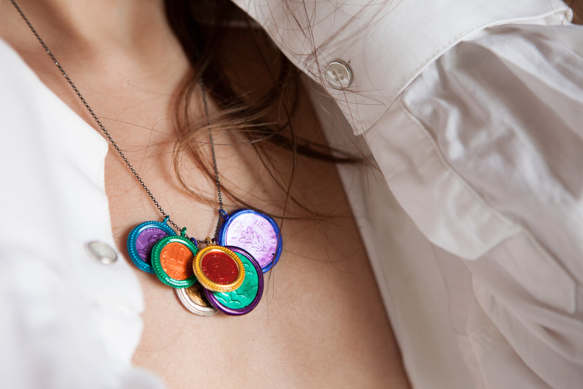 The innovative technique using electrostatic color to coat the coins provides an impactful and artistic way of individuality to every piece created resulting in a unique and fresh result. Each coin case is carefully hand-crafted in silver corresponding to the character of the coin details and revitalizing them to relate to the individuality of each person who wears it.